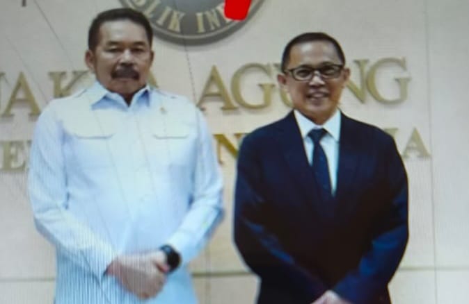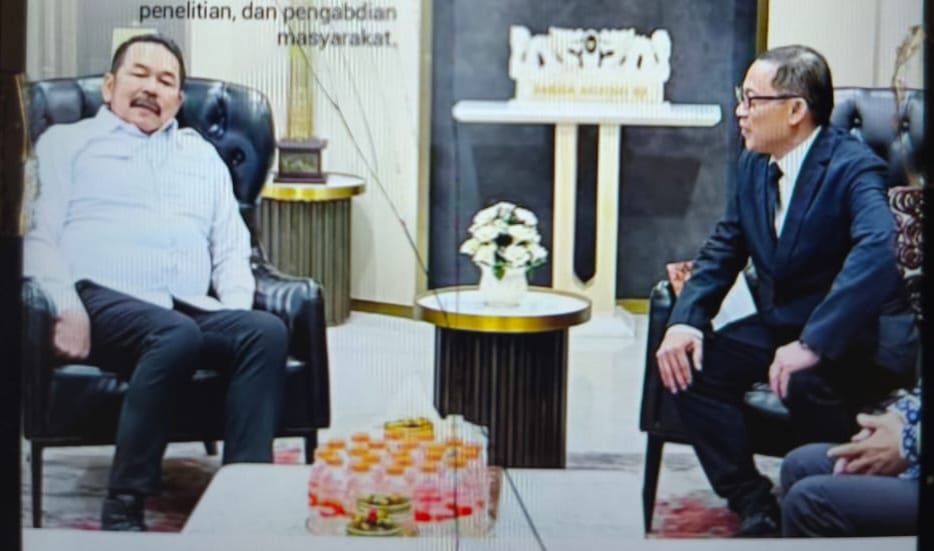 Caption : Rektor Unsrat Prov DR Ir Oktavian B.A Sompie M.Eng.IPU ASEAN Eng diskusi dengan Jaksa Agung RI Dr ST Burhanudin SH MH saat kunjungan di Kantor Kejaksaan Agung RI di Jakarta