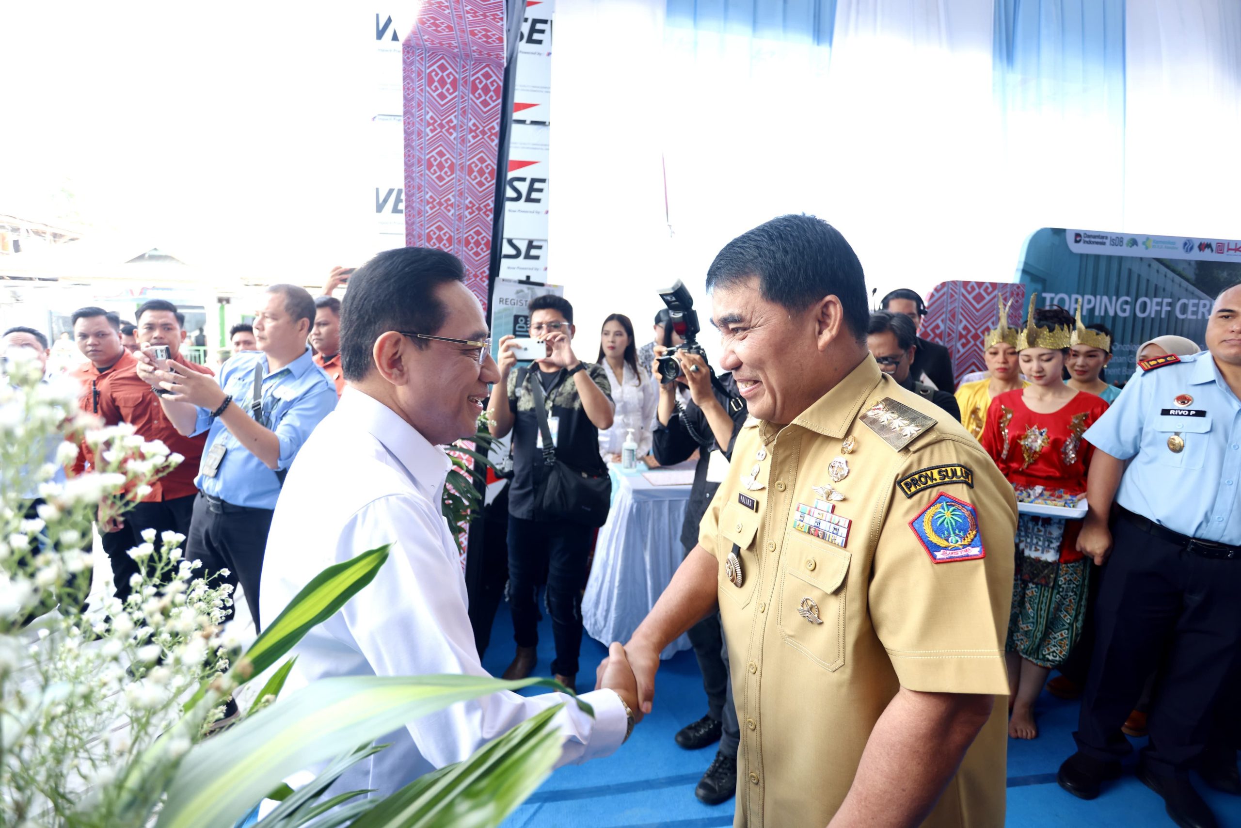 Caption : Gubernur Sulut YSK mengikuti topping off ceremony gedung pelayanan kanker